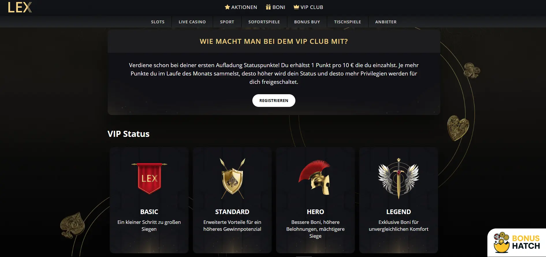 Lex Casino macht mit seinen rund 6.730 Spielautomaten, Tischspielen und Live Spielen einen guten Eindruck. Doch nicht nur die Spiele, sondern auch die Boni überraschen. Neue Spieler erhalten sogar bis zu 900€ und 400 Freispiele auf die ersten 3 Einzahlungen. Exklusiv für BonusHatch Leser gibt es außerdem 50 No Deposit Free Spins mit dem Bonus Code “CASINO50”.