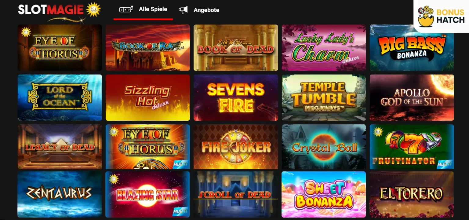 Eines der bekanntesten Online Casinos in Deutschland ist SlotMagie, das seine Popularität unter den Spielern nicht zuletzt einem guten Willkommensbonus verdankt. Nach der Registrierung können Sie 50 Freispiele als No Deposit Bonus Code erhalten und dann die Erstzyklusaktion auswählen. Schauen Sie, wie gut SlotMagie in unserem Test ist!